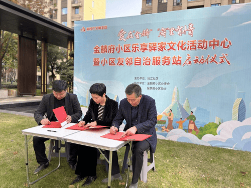 随后,姚江社区、金麟府小区业委会、金麟府小区物业签订了三方协议,三方联动共治共建,将居民小需求、小心愿转化为践行“我为群众办实事”的大项目,通过社区网格员下片区值班、开展物居业协同共治议事会等形式,让居民也能够主动参与到家园建设中,共同努力打造居民群众满意的“友邻自治服务站”。
