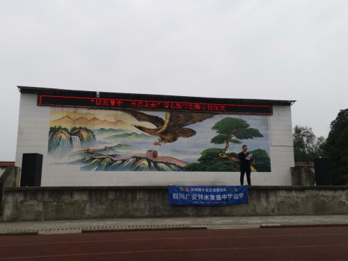 捐助仪式上,复盛中学校长荣维森代表学校全体师生对深圳狮子会正道服务队捐助的12盏太阳能路灯、2台打印机、20根中考专业考试用绳、5个篮球等物资致以衷心地感谢。他表示,学校师生将继续勤奋努力、耕耘不辍,怀感恩之心,办好阳光教育;希望孩子们把关爱化作发奋学习、立志成才、报效祖国的强大精神动力,实现自己美好的人生理想。