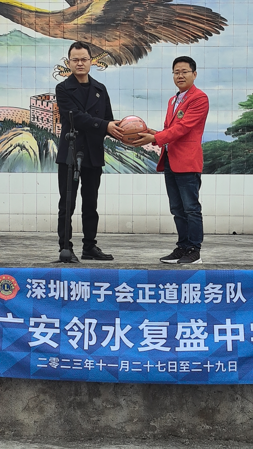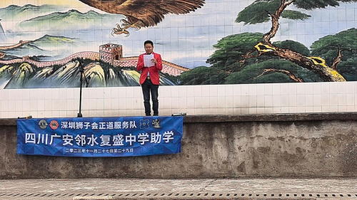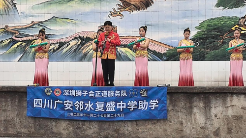 2023年11月28日上午,深圳狮子会正道服务队在队长邓俊杰、项目主席李学刚、助学委黄志勇的带领下,第一副队长刘军、前队杜涛哲、总务江毅彬、狮企委杨景麟、副总务叶仕东、何枫群、陈斌、罗勇伟、爱心人士杨国辉一行12人来到了邻水县复盛中学隆重举行捐赠交接仪式。复盛镇党委书记卢小峰、镇长陈树林参加了此次活动。