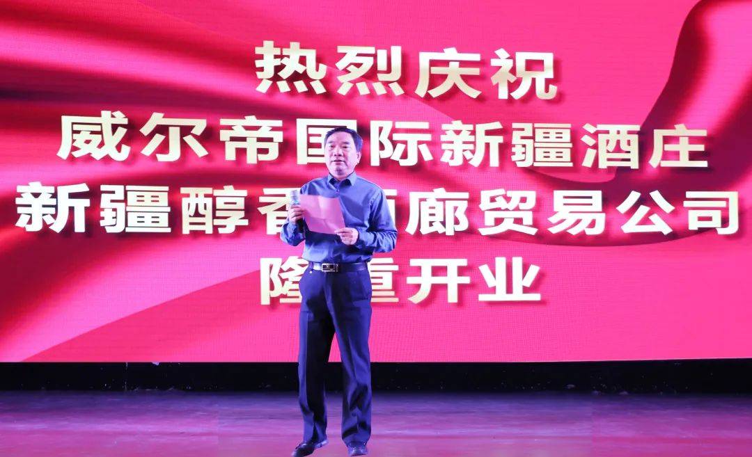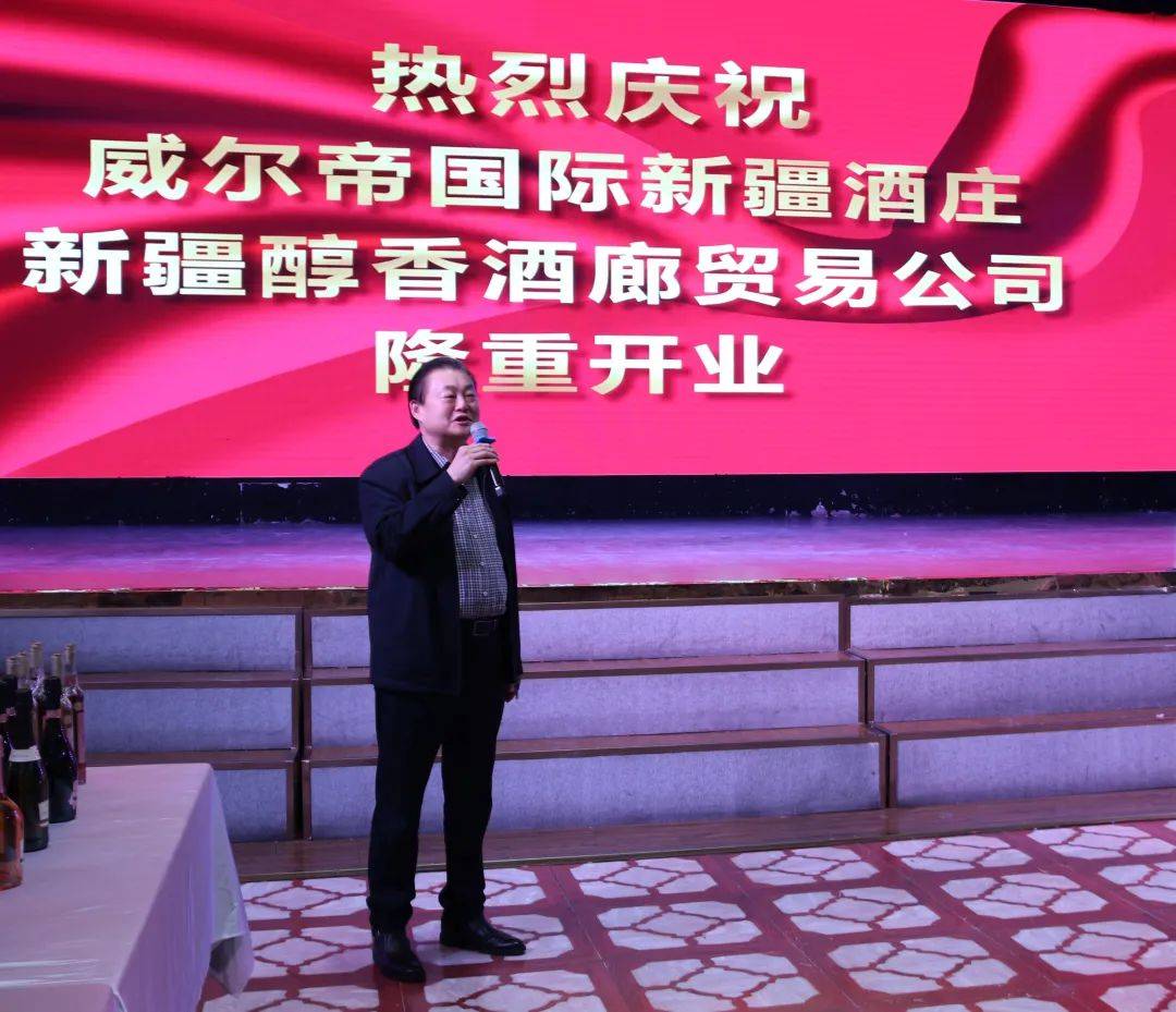 全国工商联常委,新疆自治区工商联副主席,兵团江苏商会会长栾立新致辞,代表在疆江苏籍企业家祝愿威尔帝国际酒庄新疆总部,新疆醇香酒廊贸易有限责任公司前程灿烂,一路辉煌。