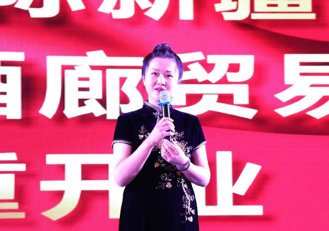 威尔帝国际酒庄新疆总部,新疆醇香酒廊贸易有限责任公司总经理李畅女士登台致辞,感谢各位领导、嘉宾、亲朋好友、兄弟友好商会和社会各界人士对威尔帝国际酒庄新疆总部和新疆醇香酒廊贸易有限责任公司的关心帮助和支持。