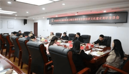 布依族文化是中华民族的文化瑰宝,如何让“布依文化”变成“美丽经济”,文化优势变为产业优势,助力乡村振兴。2月份由贵州省布依学会常务理事杨永安带队,布依学会常务副会长兼秘书长白明政、黔南州布依学会党支部书记黄光兴等组成的调研组,到福泉市、荔波县、长顺县、贵定县在当地市委,县委等部门的陪同下参观调研布依族经济文化建设工作。布依文化底蕴深厚、民族风情多姿多彩、布依村寨建设富有特色,布依文化建设和传承取得极大成效,杨永安一行先后到贵定县仙轩服饰、盘江镇音寨小学、盘江镇音寨村、盘江镇音寨村金丽农家乐调研民族手工艺品发展、民族文化进校园、特色村寨保护与发展以及布依族特色餐饮发展等情况。