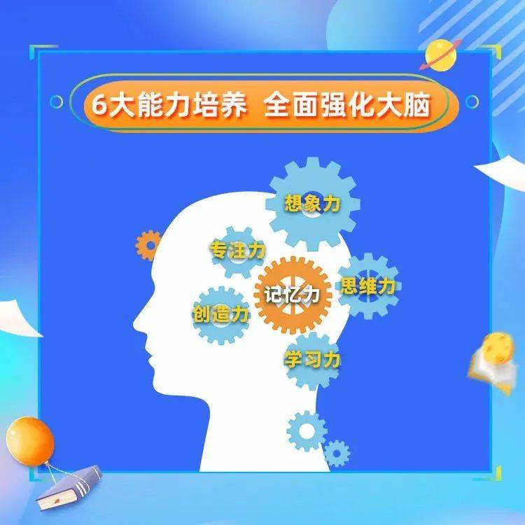 魔力脑王超级学习力课程致力于提升大脑综合“内力”,以记忆力为中心,助力提升想象力、创造力、专注力、思维力等,全面提高孩子学习能力,促使各项能力如精表齿轮般彼此推动,助力孩子成为记忆高手。
