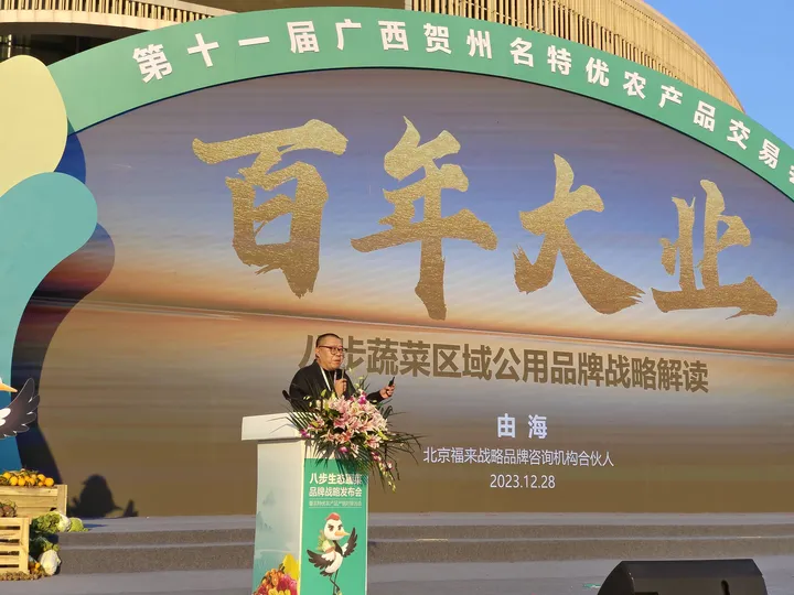 北京福来咨询合伙人由海详细阐述了八步生态蔬菜品牌的战略推广及实施品牌强农战略,需要政府主导,更离不开企业经营,只有这样,才能实现政府与企业的双轮驱动。由海与在场领导嘉宾共同启动八步生态蔬菜品牌发布仪式。