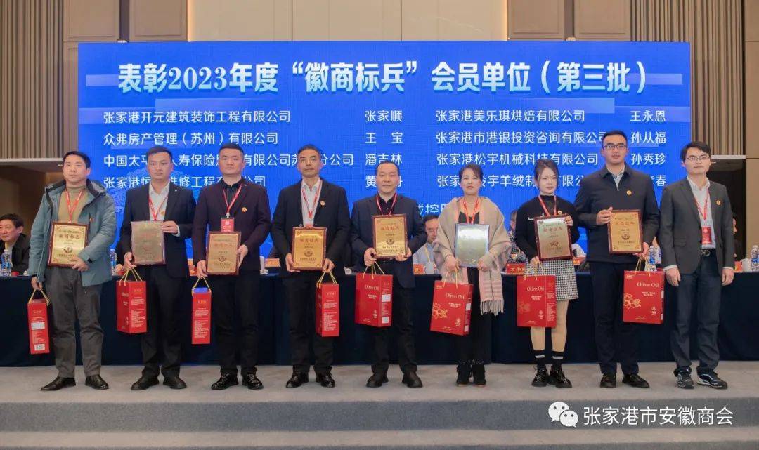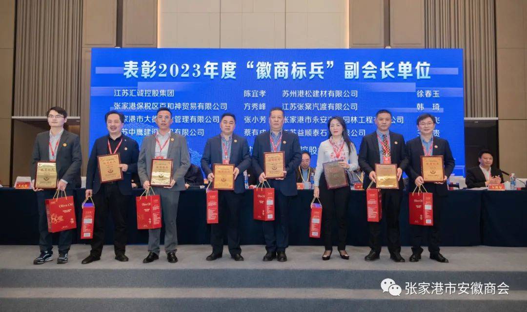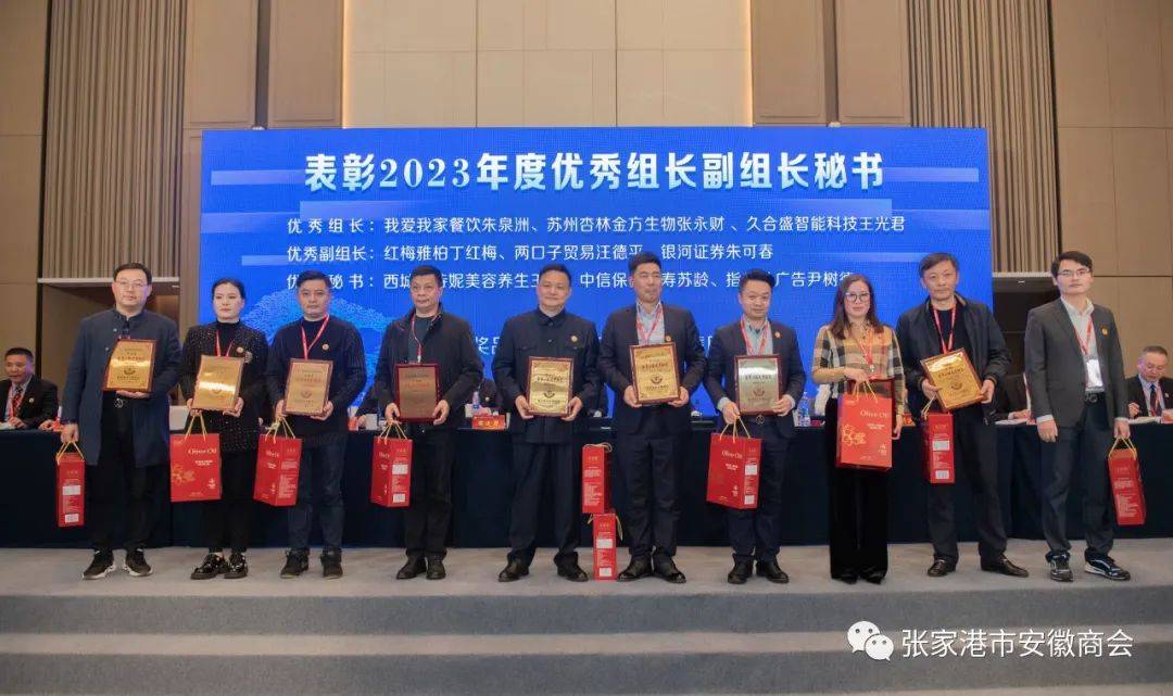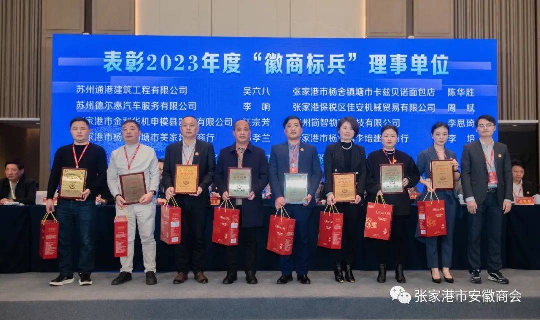 表彰了2023年度优秀单位。大会对8家“徽商标兵”副会长单位、8家“徽商标兵”理事单位、24家“徽商标兵”会员单位,以及9名会员小组优秀组长、副组长、秘书进行了表彰。