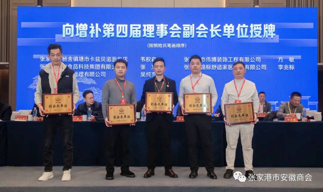 选举增补了张家港市安徽商会第四届理事会理事。会议进行了选举增补张家港市安徽商会第四届理事会理事,一致表决通过了增补同庆楼太湖餐饮无锡有限公司张家港吾悦广场店韦权森等21名同志为第四届理事会理事。