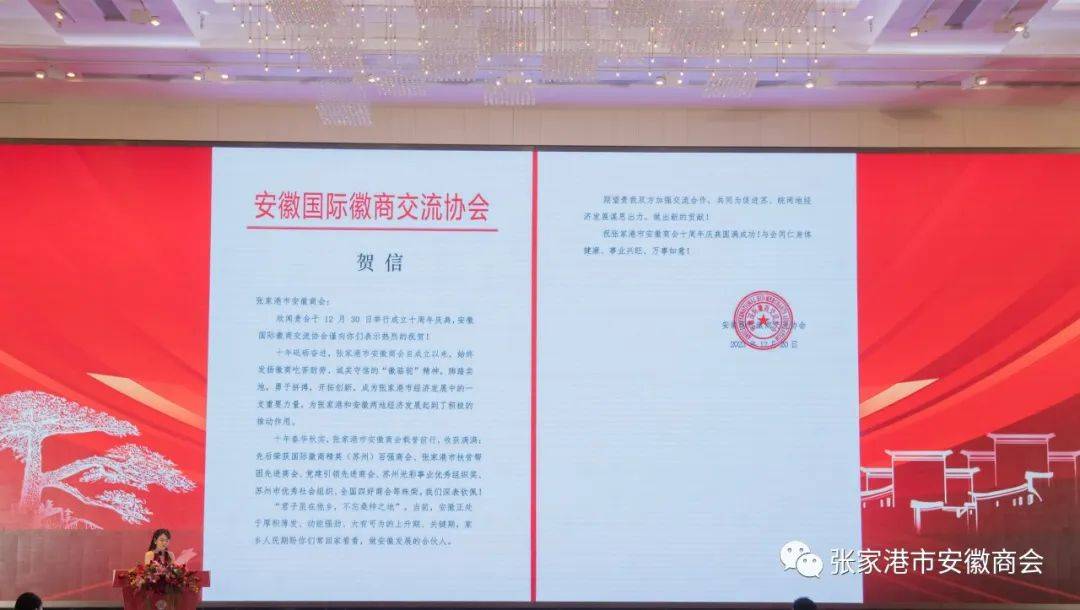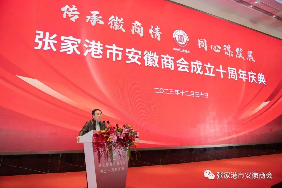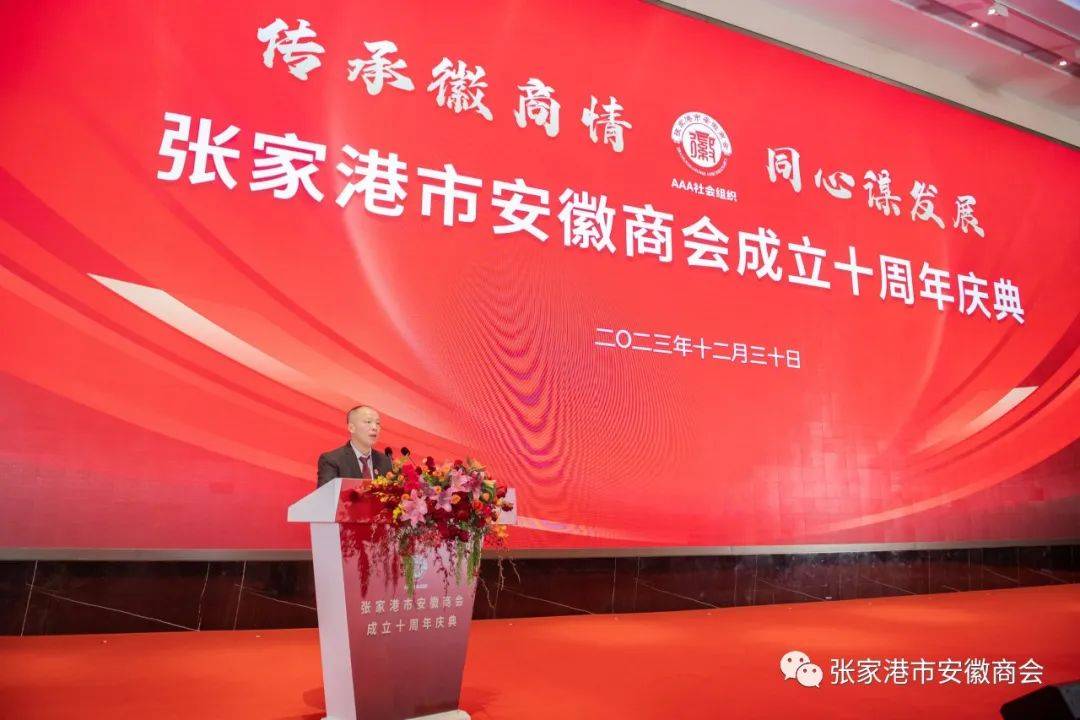 2023年12月30日下午,张家港市安徽商会第四届第二次会员大会和张家港市安徽商会成立十周年庆典活动在万豪酒店隆重举行。
