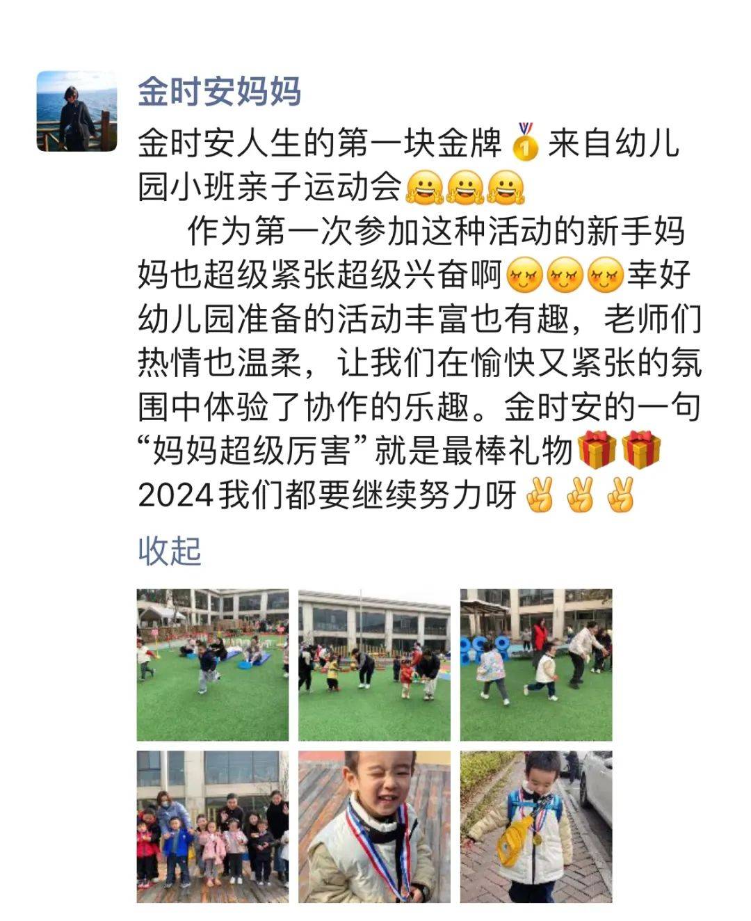 游戏结束,老师们给在游戏中获得胜利的小朋友们和家长们颁发奖牌。好开心啊!