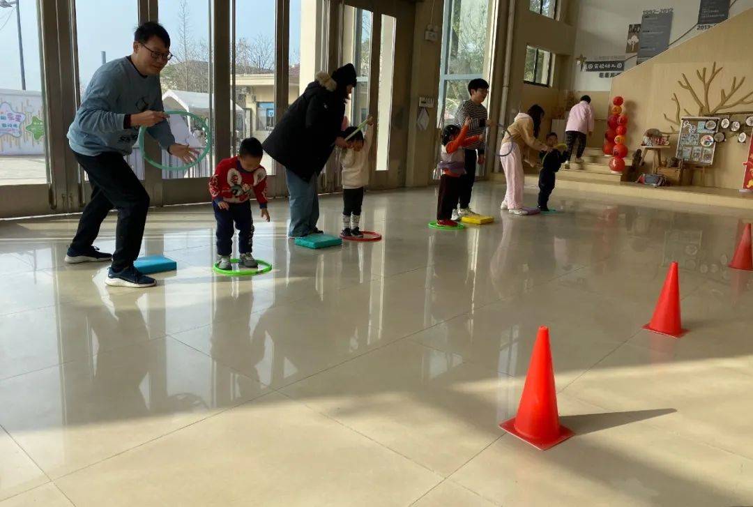 我们手拉手,彩圈钻一钻!小朋友们和大朋友们都很专注呢!
