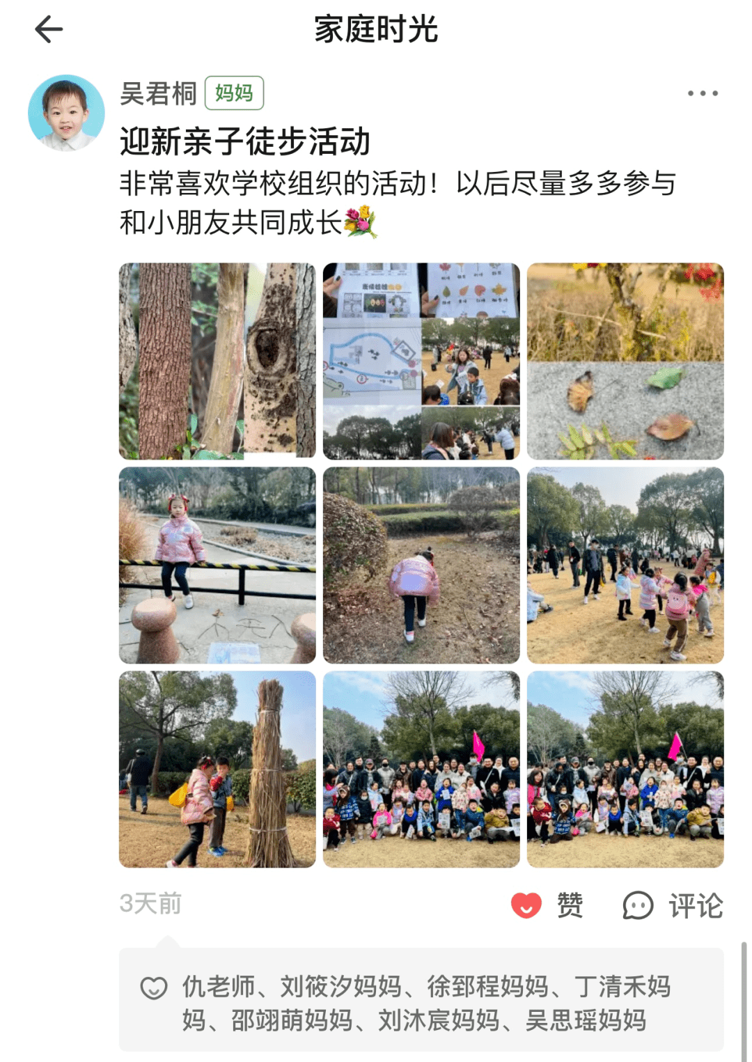 为增强幼儿体质,让幼儿愉快、轻松地走进大自然,亲身体验和感受冬季的美,享受美好的亲子时光,中班级部开展了“迎新年亲子徒步”活动。他们带孩子来一场说走就走的远足自然行,一起探寻初冬的秘密。