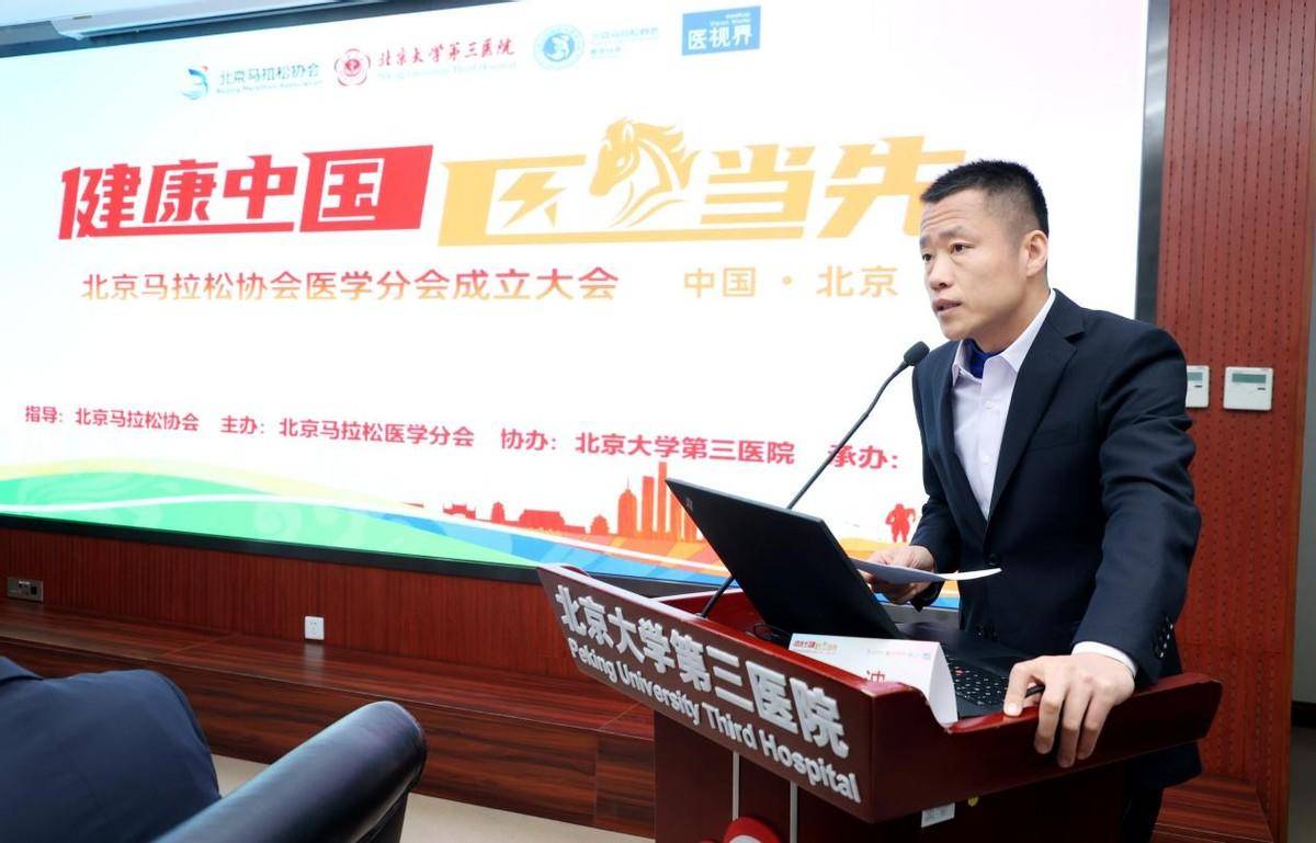 马拉松爱好者、国家卫生健康委卫生发展研究中心研究员付强作为医学分会首任会长做了主题发言。他强调,每个人是自己健康的第一责任人,各项健康影响因素中,对健康贡献率最大的不是医疗措施和药物干预,而是健康的生活行为方式。健康中国倡导的是主动健康、运动健康、全面健康的人人健康,医者在推动健康中国建设的实践中,不仅要习惯开医学处方,更要学会开运动处方;不仅要提供优质高效的医学专业服务,更要有身体力行的运动健康宣教和示范引领。同时,医学分会的成立,对倡导和促进科学开展、参与马拉松运动,增强健康效果、预防减少运动损伤、精准高效开展运动医学干预,全方位推动体医融合,为广大市民提供科学、有效的健康指导和服务,必将发挥重要作用。