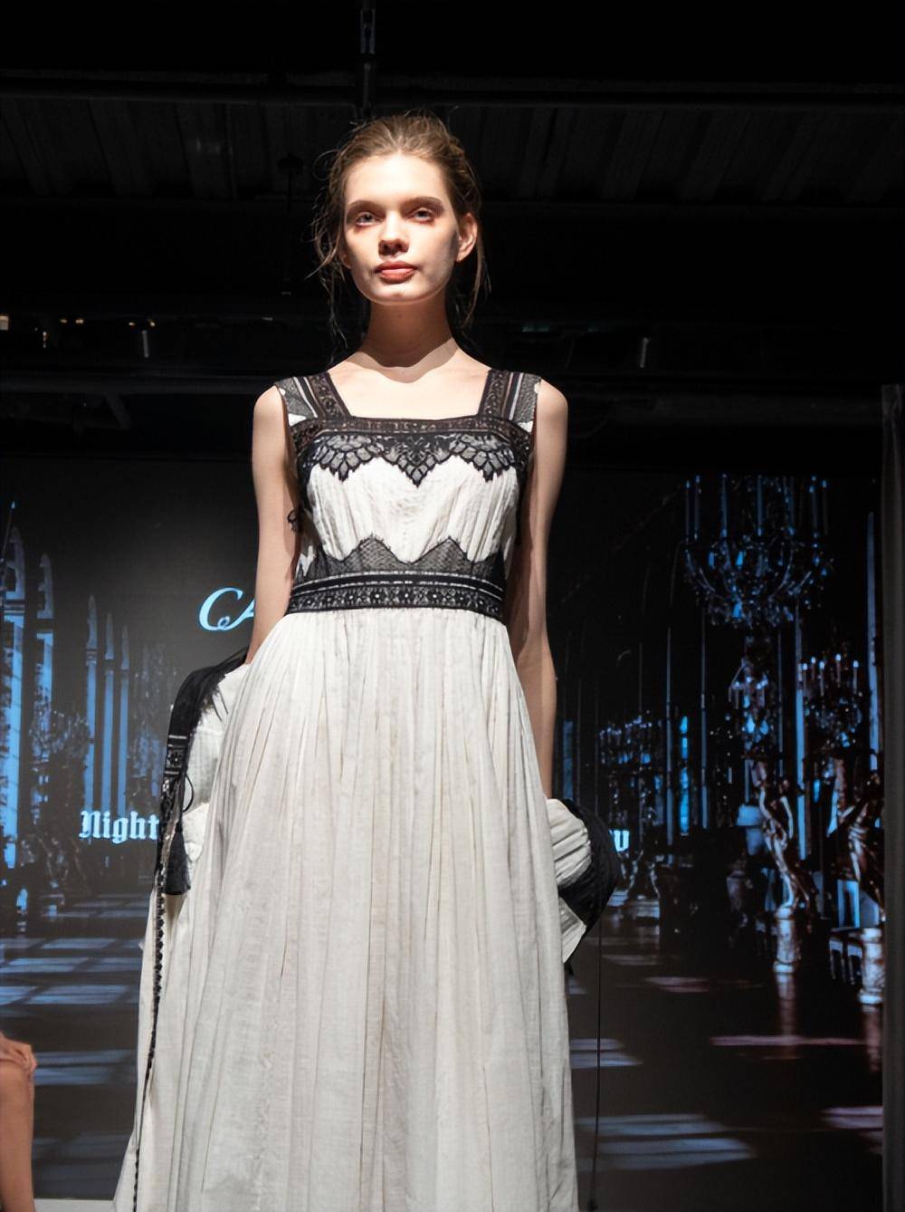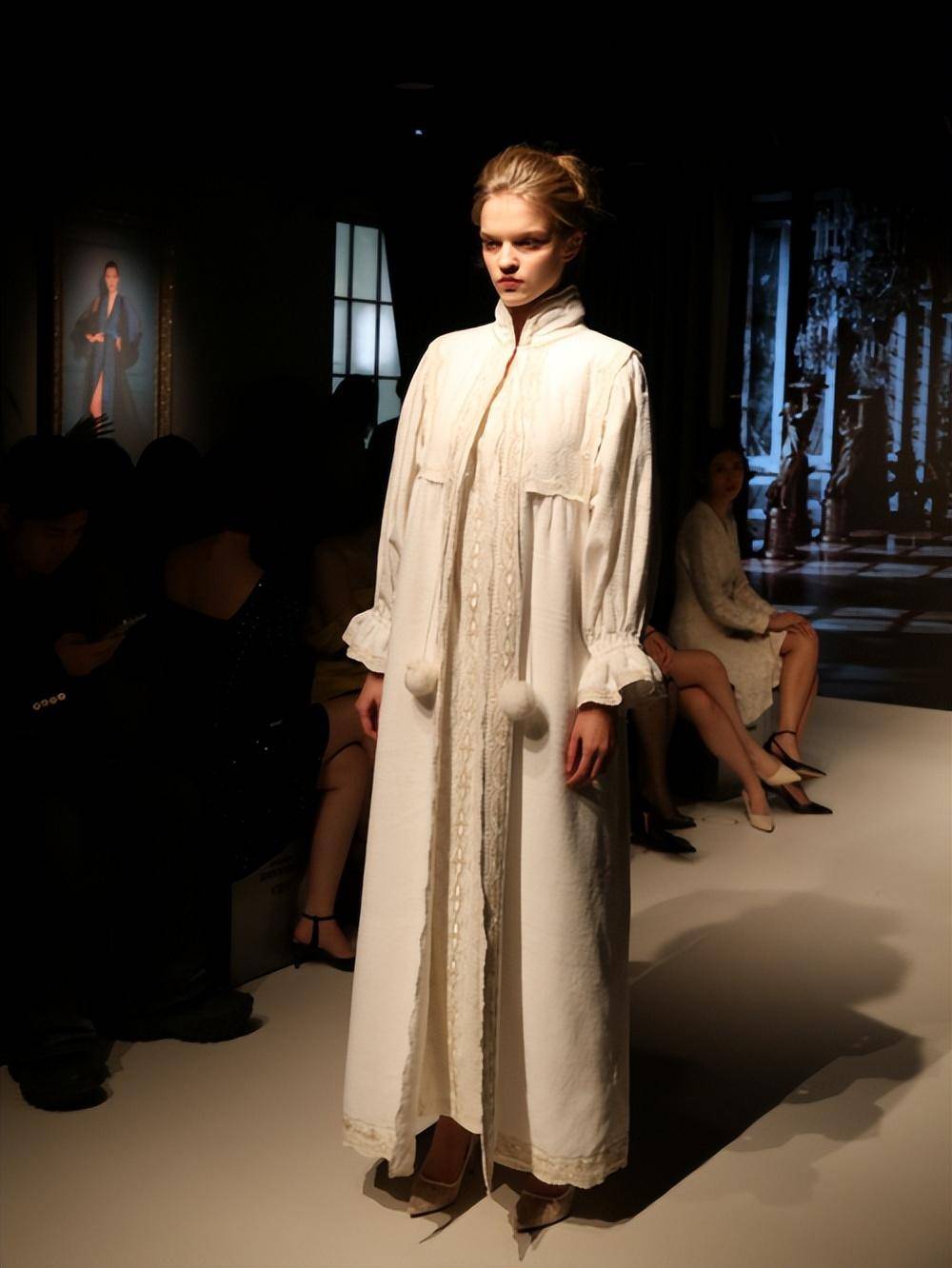 整场大秀,共计展出可可梦、经典黑白、夜礼服、禅意花园及Vintage古董裙多个系列数十件臻品睡裙。当舞台布景和通道被璀璨灯光点亮,不同肤色的Model身披梦幻霓裳,她们仿佛从过去的时空跨越而来,带着对未来的异想与重构、探索与笃定,裹挟着浓烈的古典法式风情,步出缱绻诗意……