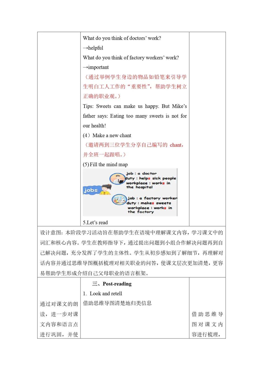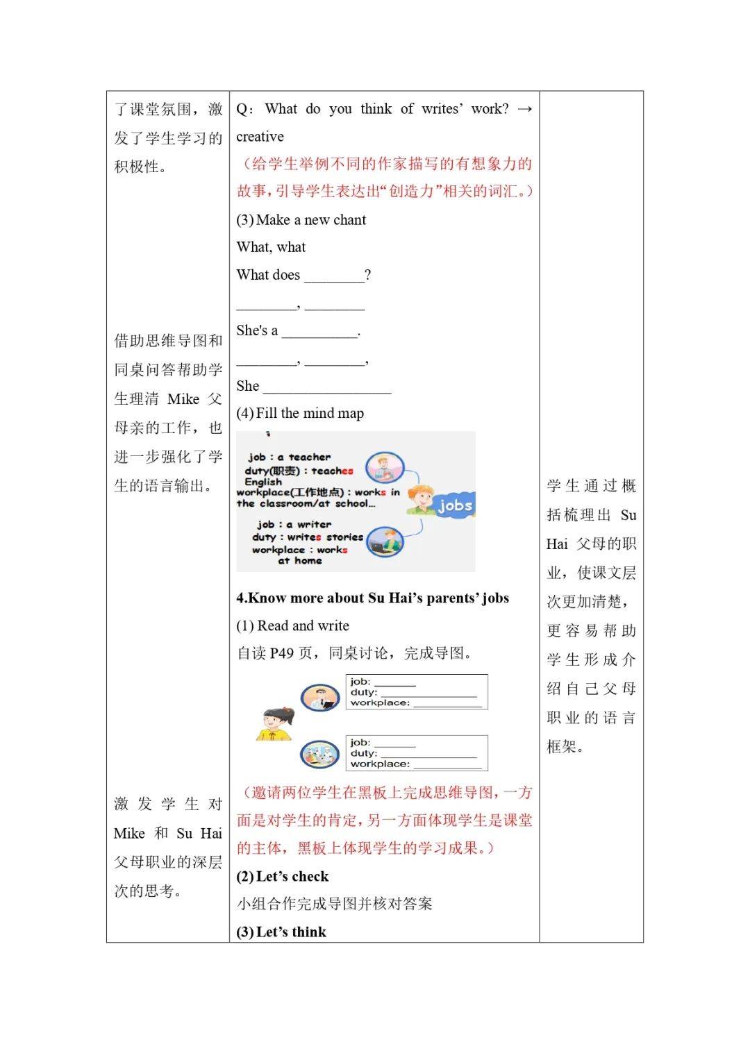 在本课时的教学过程中,潘老师深刻围绕“职业”主题为学生提供了真实的情境,在讨论到文本中父母的职业时,潘老师对教材内容做了细致的处理,不仅梳理了文本内容,还就不同职业在实际生活中存在的意义与学生进行探讨,充分链接了现实生活,让学生感悟每一种职业都有不同的意义、都是伟大的。在课堂的最后又重新联系课前阅读的绘本,让学生在了解更多职业的名称的同时也更深刻体会本课时的主题,帮助学生形成正确的职业观,在认知思维上有所提升。