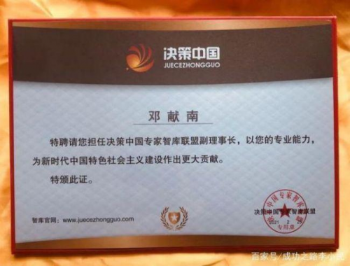 邓献南,男,1956 年1月出生于浙江丽水。艺名:仙男。1988 年创办了丽水市城关畜产品经营部,2006年6月创办丽水市瓯江奇石博物馆。创始人,历任馆长。2007年11目创办丽水市古石器文物馆,创始人、历任馆长,创办丽水市古石器文化学会,创始人、历任会长。2008 年 11 月创办远古人类古石器文物馆,创始人,历任馆长。创办远古人类古石器甄定中心,创始人、历任总监。创办远古人类古石器文化学会,创始人、历任主席、会长,2014年 11月,创办远古人类古石器科学院,创始人、历任院长。