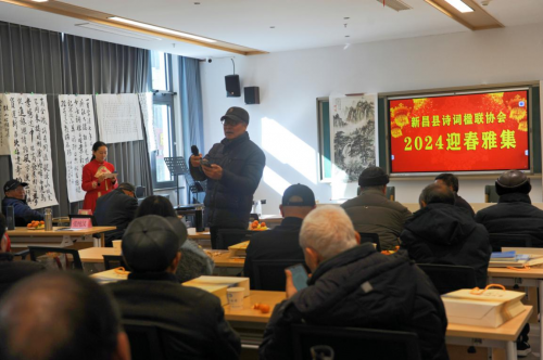新年伊始,浙东唐诗之路发祥地新昌县“诗兴大发”!1月14日,新昌县诗词楹联协会在县“长者中心”举行2024迎春雅集活动,近百名诗词爱好者共聚一堂,会场四周挂满了协会诗人创作并撰写的诗词书法作品,以赋诗说词等优雅的形式辞旧迎新。