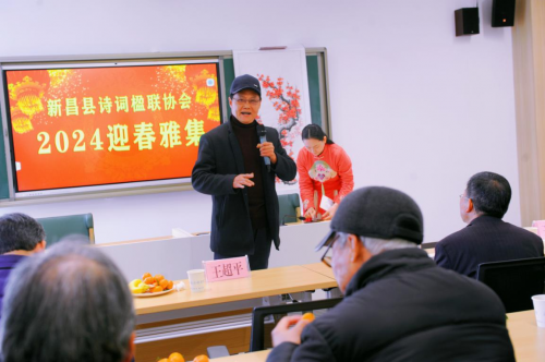 新昌县有关部门领导及社团负责人一起参加了活动,县文学艺术界联合会主席王超平发表了热情洋溢的讲话,他充分肯定了县诗词楹联协会所取得的各方面的成绩,并对新一年的工作提出了希望和要求。