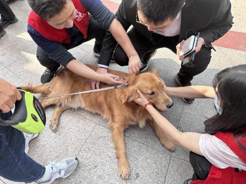 活动现场各种宣传材料和图片展示了科学文明养犬的重要性和责任。儿童砂画、免费狂犬疫苗、办理电子养犬证、发放宠物牵引绳、宠物罐头等多个互动项目丰富了活动内容,吸引了大量市民的关注和参与。 儿童砂画项目作为活动中的一大亮点:孩子们在专业指导下,用五颜六色的砂子创作出各种可爱的宠物形象,这不仅锻炼了他们的动手能力,也加深了他们对宠物的喜爱和保护意识。为了保障市民和宠物的安全和健康,现场还提供了免费狂犬疫苗接种服务。爱心合作医院——万德福宠物医院专业的兽医团队为前来参加活动的宠物进行疫苗接种,有效预防了狂犬病的传播和感染。“领养代替买卖,让爱不再流浪”一直是协会的初衷,现场还设立了办理电子养犬证和领养流浪猫狗的服务,方便市民办理相关手续,合法合规地养宠。志愿者为居民们发放宠物牵引绳和宠物罐头等萌宠大礼包,为社区居民带来了养宠的便利与福利。