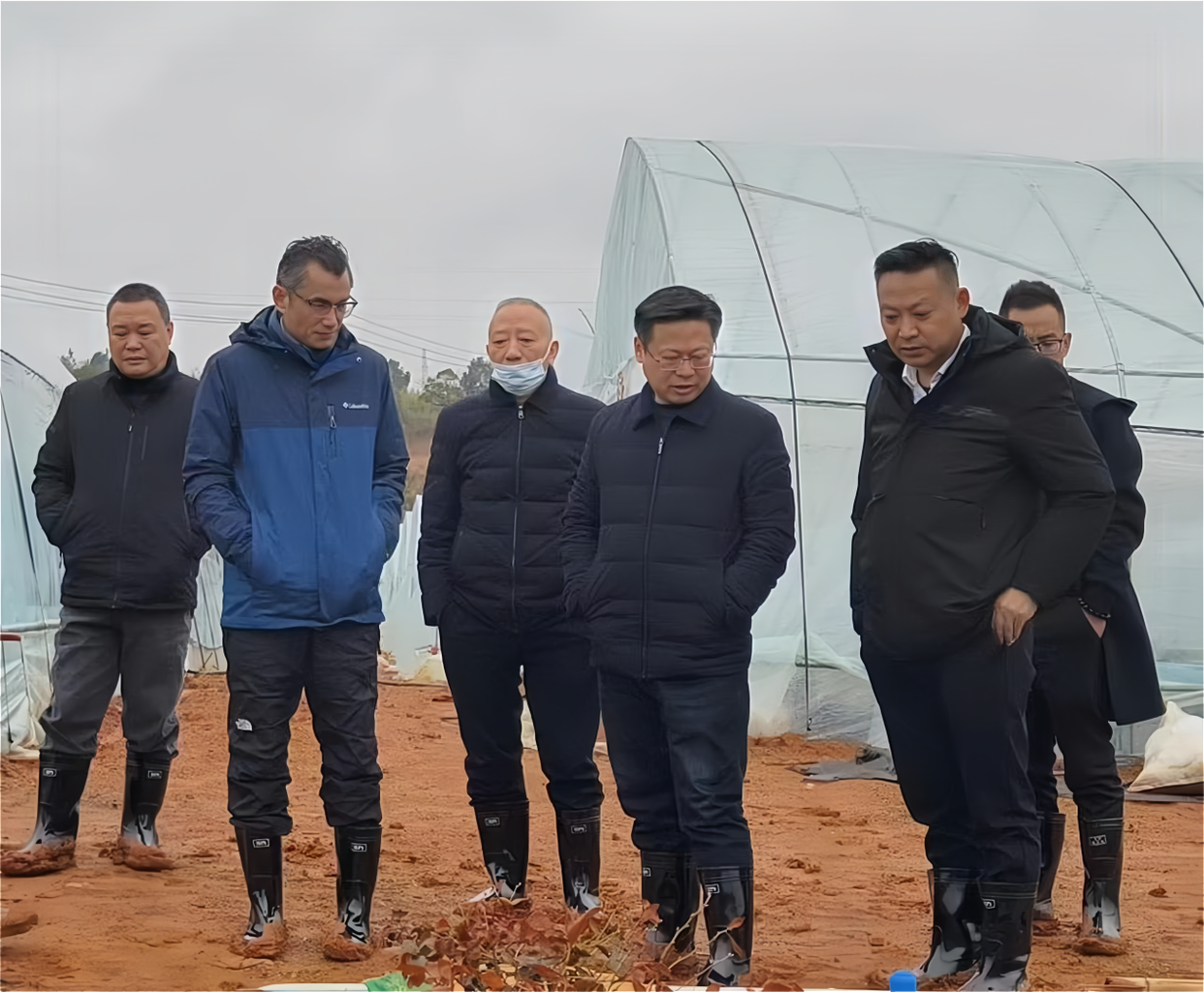 立春时节,除夕临近,全国各地都在为欢度春节忙着最后的准备。然而,江苏农本集团却在这个特殊的时刻,迎来了十总镇农业农村局局长张明、十总镇副镇长陈熹 、 通州区农业农村局副局长季国军、十总镇农业农村局副局长陈林燕 、区农业农村局产业科科长奚建、 区农业农村局产业科朱晓晨 、区农业农村局安监科王忠一行考察团。江苏农本集团对于考察团的到来,感到十分荣幸和期待。他们热情地引领着考察团参观农本集团,详细介绍了农本集团蓝莓种植的技术和未来的规划。