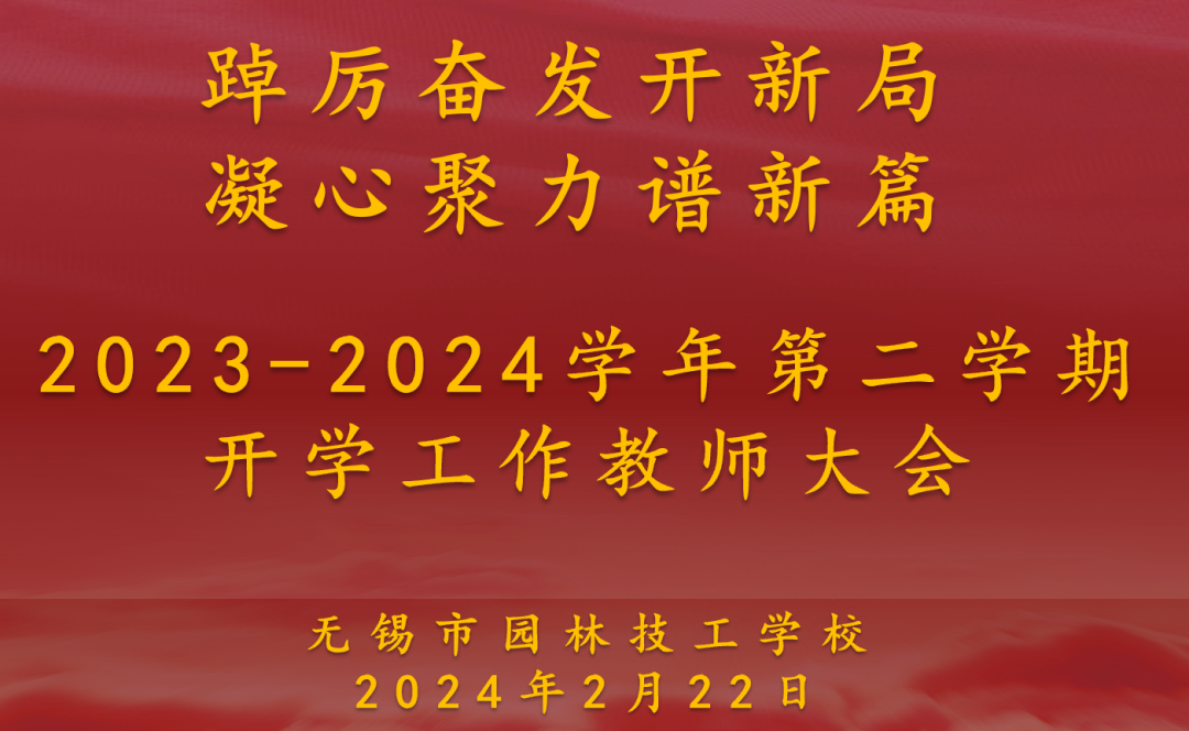 充满希望与憧憬的新学期如期而至,为科学谋划新学期发展方向,确保开学工作平稳有序进行,2月22日上午,无锡市园林技工学校召开主题为“踔厉奋发开新局,凝心聚力谱新篇”的新学期教职工大会。