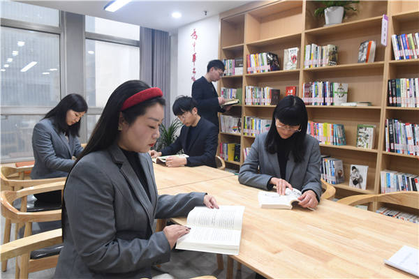 近日,中国电信江苏淮安分公司工会发挥淮安书房电信分馆现有阅读阵地作用,实施“全员阅读春风行动”行动,激发员工阅读热情、培育员工阅读习惯、提高员工阅读水平,不断提高全员阅读覆盖率。图为2月28日,淮安分公司客户维护支撑中心工分会开展员工读书日活动。