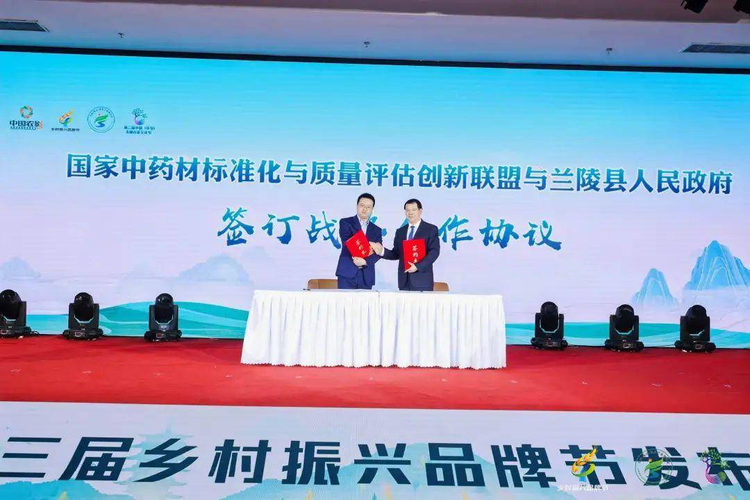 现场还进行了国家中药材标准化与质量评估创新联盟与兰陵县人民政府的签约仪式,国家中药材标准化与质量评估创新联盟秘书长郑文科,兰陵县委副书记、县长李春仲上台一同签约。
