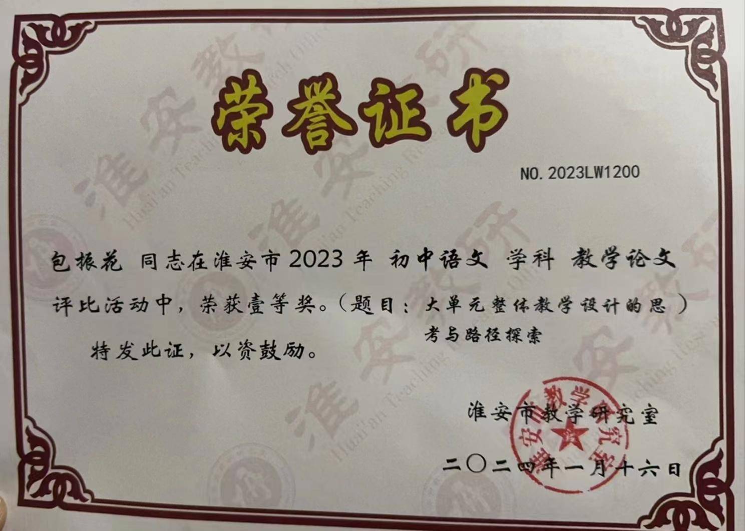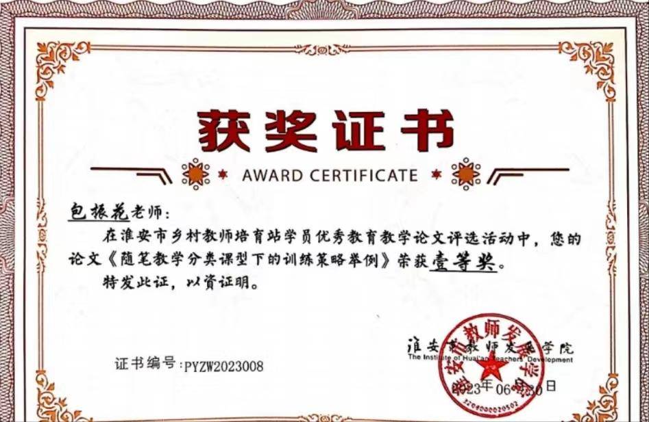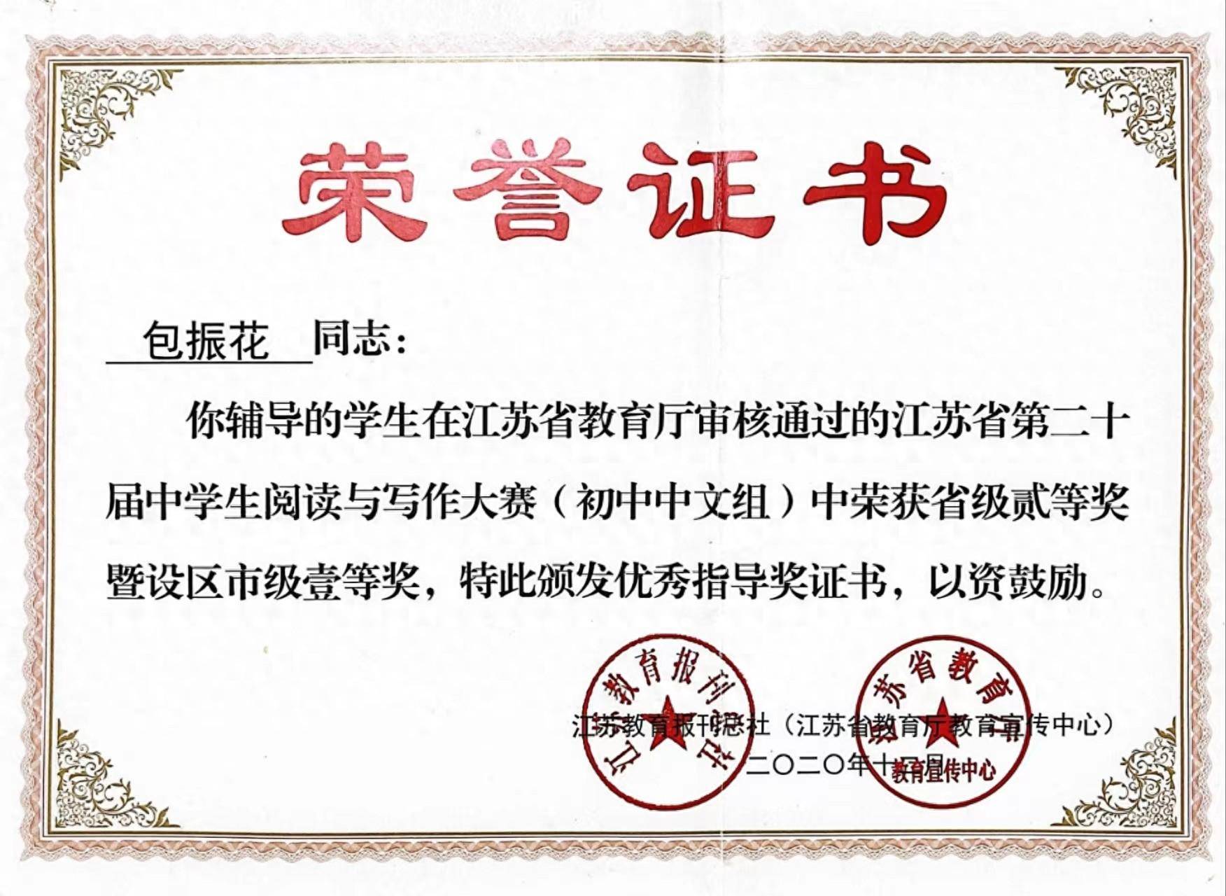 包振花老师任教两个班的语文,也担任班主任工作。她将提高学生语文成绩放在重要位置,同时也将班主任工作做得细致入微。语文教学研究是她的强项,班主任工作也丝毫不逊色。她热爱教学,在专业领域中有很多独特又深刻的见解和做法,思考并实践着,在实践中自己有所获,学生有所得。她关爱每一位她所教过的学生,从教以来,一直受到家长的认可,“恩威并济”管理下的班级井然有序,学生各司其职。学生们优异的成绩是她脸上的笑容,学生们快乐的样子是她力量的源泉。