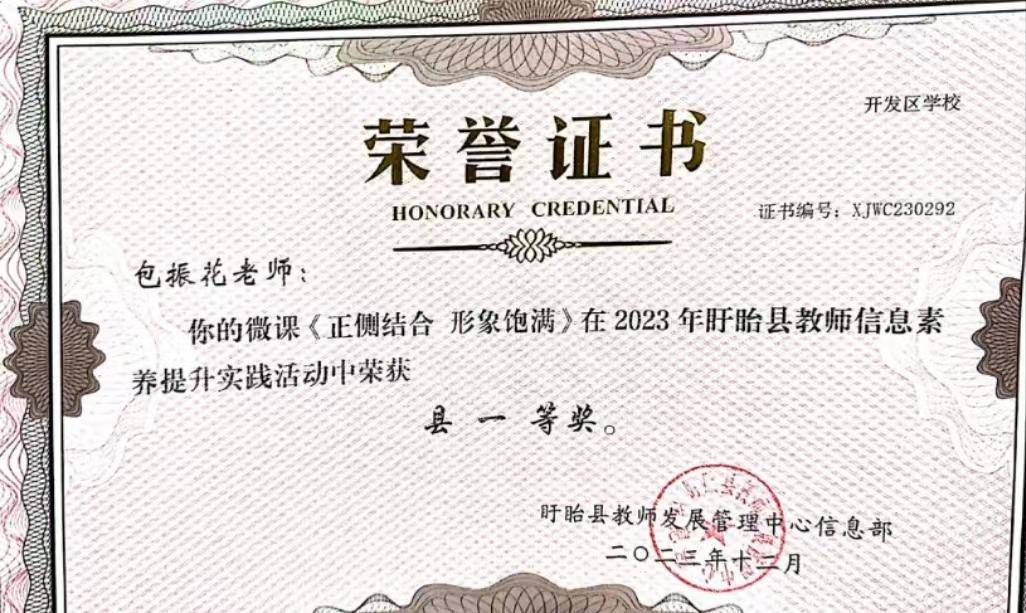 包振花,从教十五年,一直用行动践行自己的诺言,“教师是一种职业,更是一份责任。”教育本身是社会的责任,教书育人是教师的根本任务。一个好教师,只有业务的精与博是远远不够的,还要有一份博爱之心。有爱的教育,才能演绎教育的精彩。
