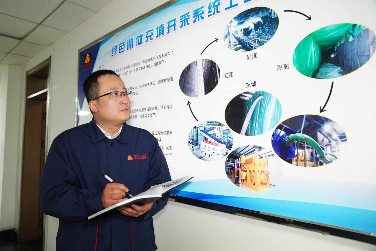 他着手推进膏体充填开采让煤炭生产“向绿而行”。不同于传统的垮落式采煤法,通过绿色膏体充填开采方法实现“地表零沉降”、“矸石零排放”、“水体零破坏”,目前已经熟练掌握长壁和短壁两种膏体充填开采技术,累计完成两个长壁膏体充填工作面、三个短壁面充填工作面充填作业,接下来将进一步完成排定的长、短壁膏体充填开采工作面采煤,全面推进煤炭生产“向绿而行”。