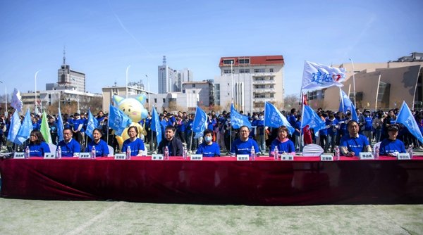 操场上一千二百多名志愿者、爱心人士和近百位孤独症孩子、家长以及滨海新区融媒体中心、自媒体、各平台主播等几十名记者参加这次活动。