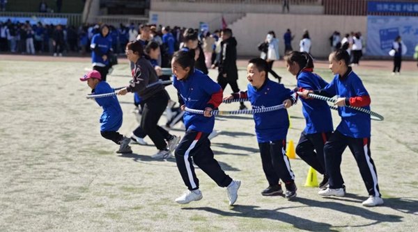 趣味运动项目分13 个单元,在整个足球场上分区域有序的同时进行。拔河比赛,你争我夺各不相让;翻山越岭争先恐后,势不可挡;大勺运蛋、跳长绳、不倒森林、电臀乒乓球亲子运动不慌不忙,稳扎稳打;运沙包接力、小火车滴滴滴、搭桥过河、轮胎跑起来,竞争激烈,力争上游;团体搭桥过河、大手套串珠、孤独症知识问答、轮胎好忙等等都精彩纷呈,毫不逊色。