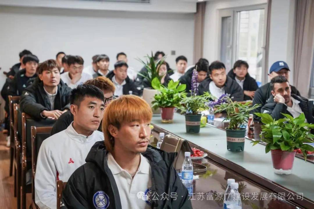 4月2日上午,江苏富源广建设发展有限公司邀请无锡吴钩足球俱乐部全体教练员、球员及工作人员来公司总部参观交流。