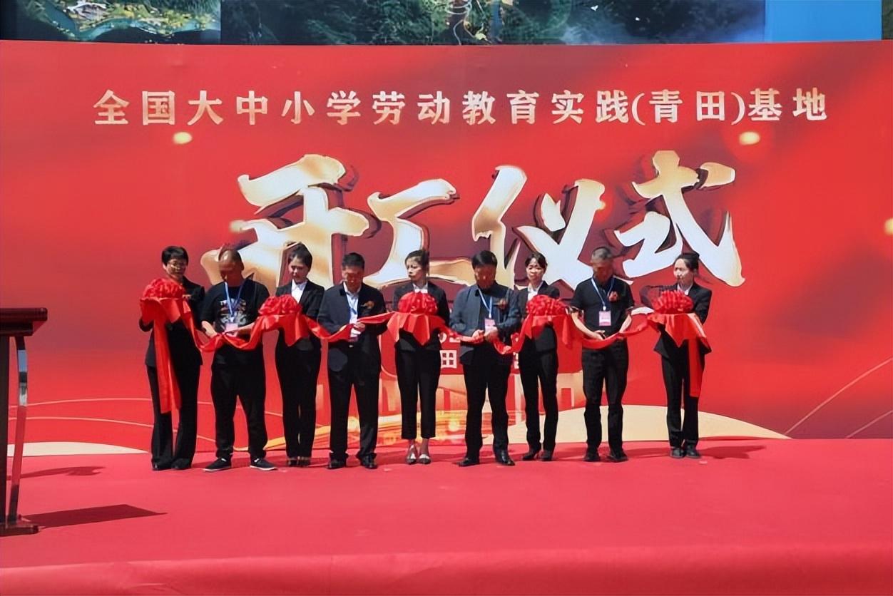图为与会领导进行大中小学劳动教育综合实践基地(青田)基地剪彩仪式。