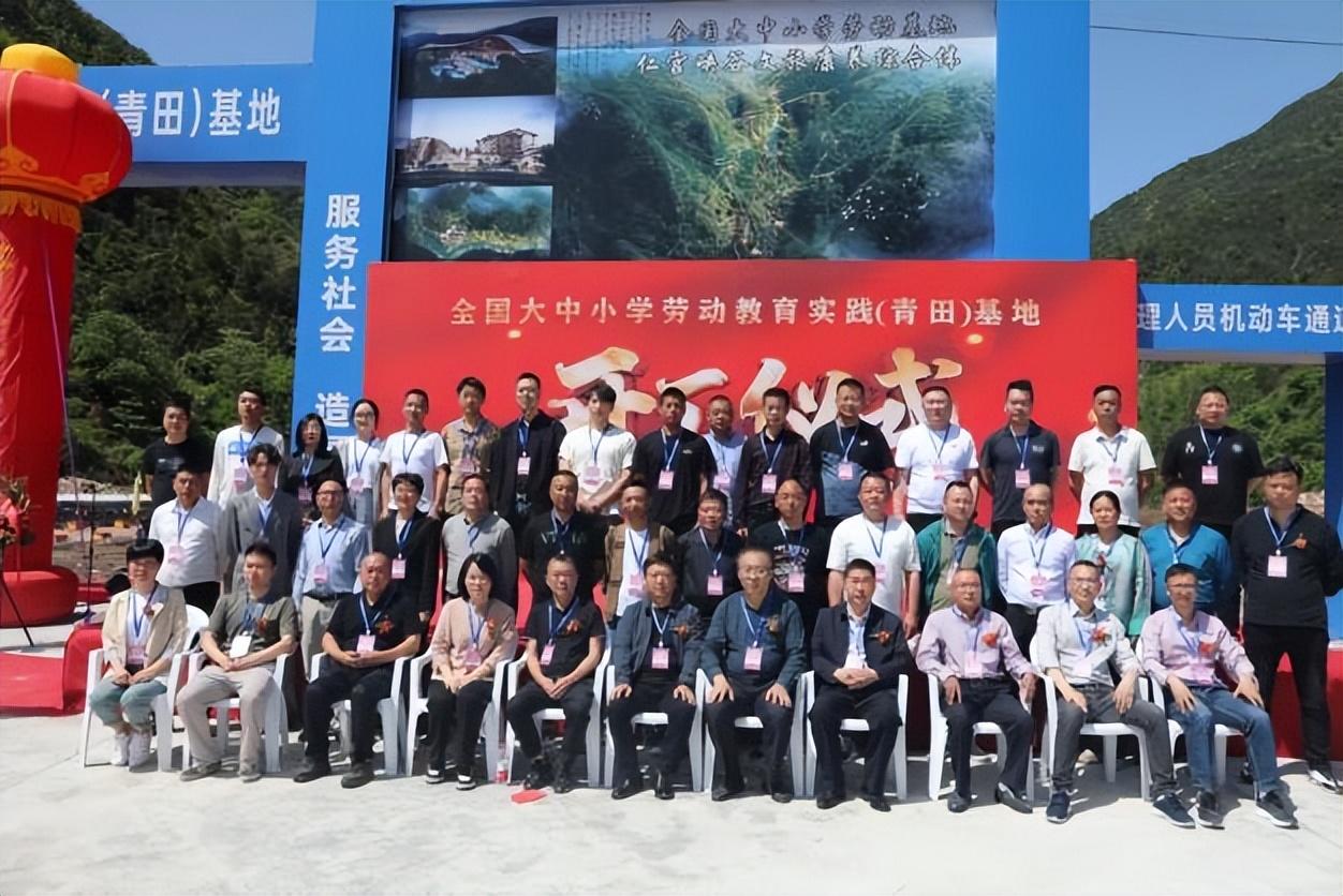 图为参加大中小学劳动教育实践基地(青田)基地开工典礼的与会领导专家合影。