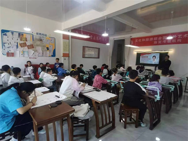 4月20日,阳光明媚,春风和煦,正是万物复苏、生机勃勃的时节。在山西省朔州市应县城内的正北堂写字工作室,一场特殊的文化盛事正如火如荼地进行着。正北堂书法培训班百名少年儿童其中38名学生齐聚一堂,共同参加了由中国文旅部主办的校外书法考级。