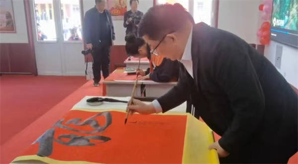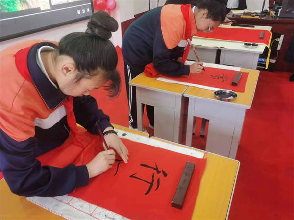 此外,师生挥毫泼墨的书法展示也吸引了众人的目光。同学们手挚毛笔,饱蘸上笔墨,在宣纸上挥洒自如。他们的笔法或刚劲有力,或柔美流畅,展现了中华书法的独特魅力。