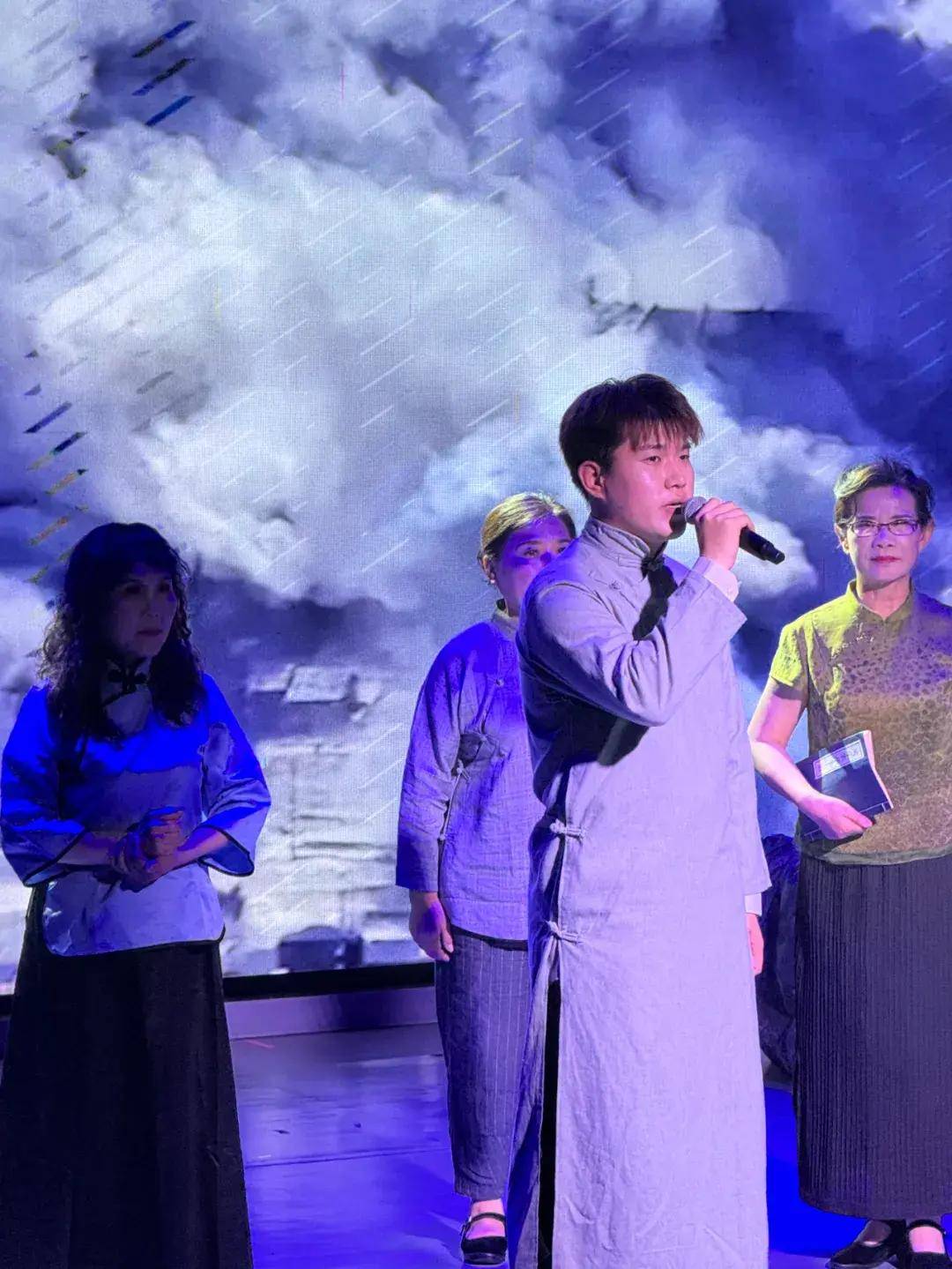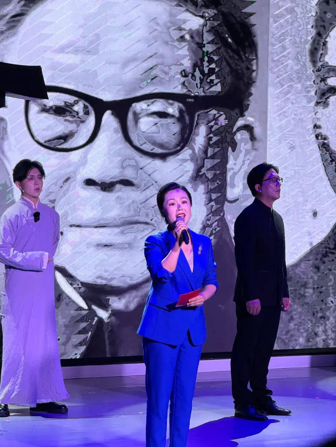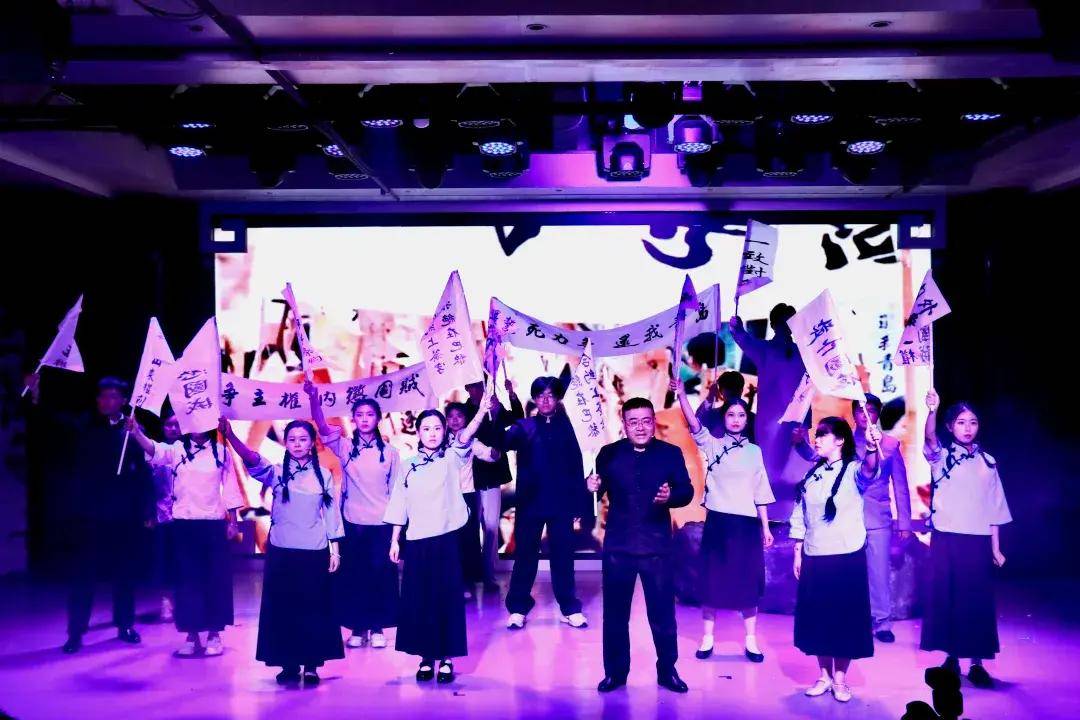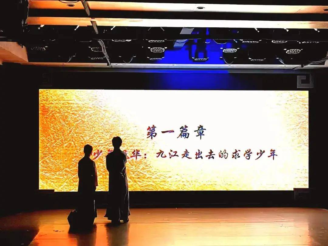 晚上7点30分,朗诵会在《我为庐山人》的诗歌朗诵中拉开帷幕,四个篇章“逐梦风华——九江走出去的求学少年,奋斗青春——五四运动的学生领袖,投身救国——追求民主与自由的脚步,夙愿得偿——中国共产党的一生追随者”无缝衔接,有序贯穿,以朗诵表演的诗会形式追忆许德珩赤诚爱国,终生不渝的传奇人生,书写振兴中华、永跟党走的新时代篇章。朗诵会现场结合音乐、情景表演、影像、光影等艺术形式,再现了诗歌的时代背景,呈现出诗歌的唯美意境。