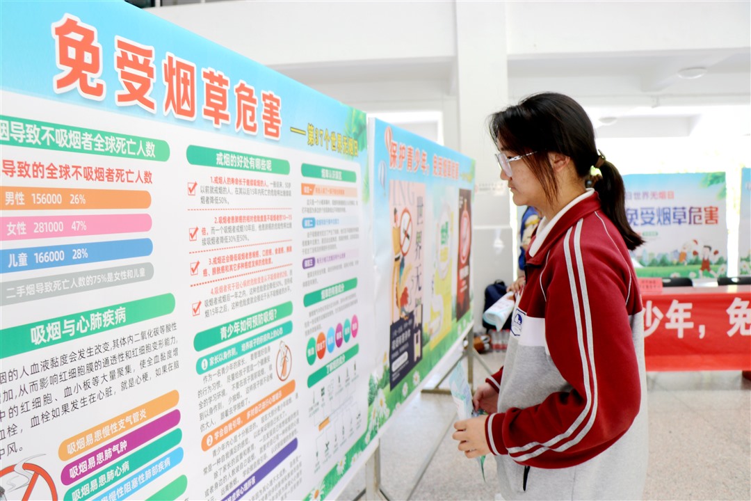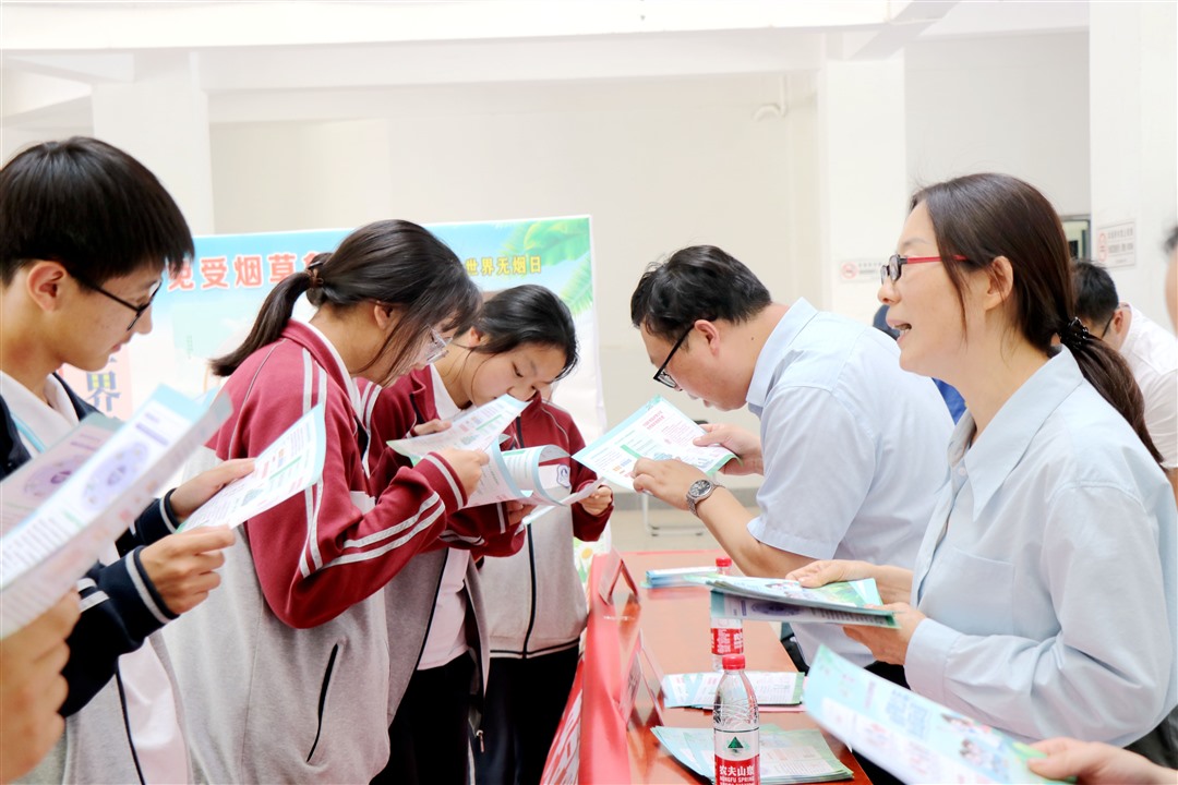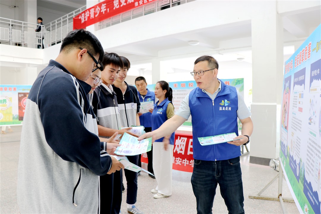 今年5月31日是第37个世界无烟日。今年的世界无烟日主题是“保护青少年,免受烟草危害”。为进一步提高学生对烟草危害的认知,引导学生远离烟草制品、拒绝吸烟,给学生营造一个无烟、健康的成长环境,5月28日下午,淮安区疾病预防控制中心来淮安中学开展第37个世界无烟日主题宣传活动,高一年级部分学生参加活动。淮安区疾控中心副书记张国英,淮安中学副校长葛金雷等领导出席活动。活动由淮安中学学生工作处主任徐怀亮主持。