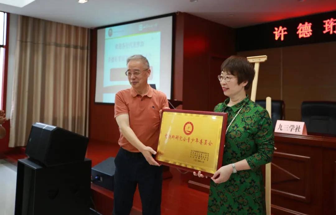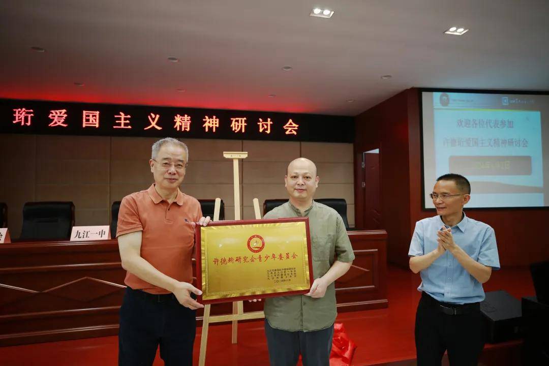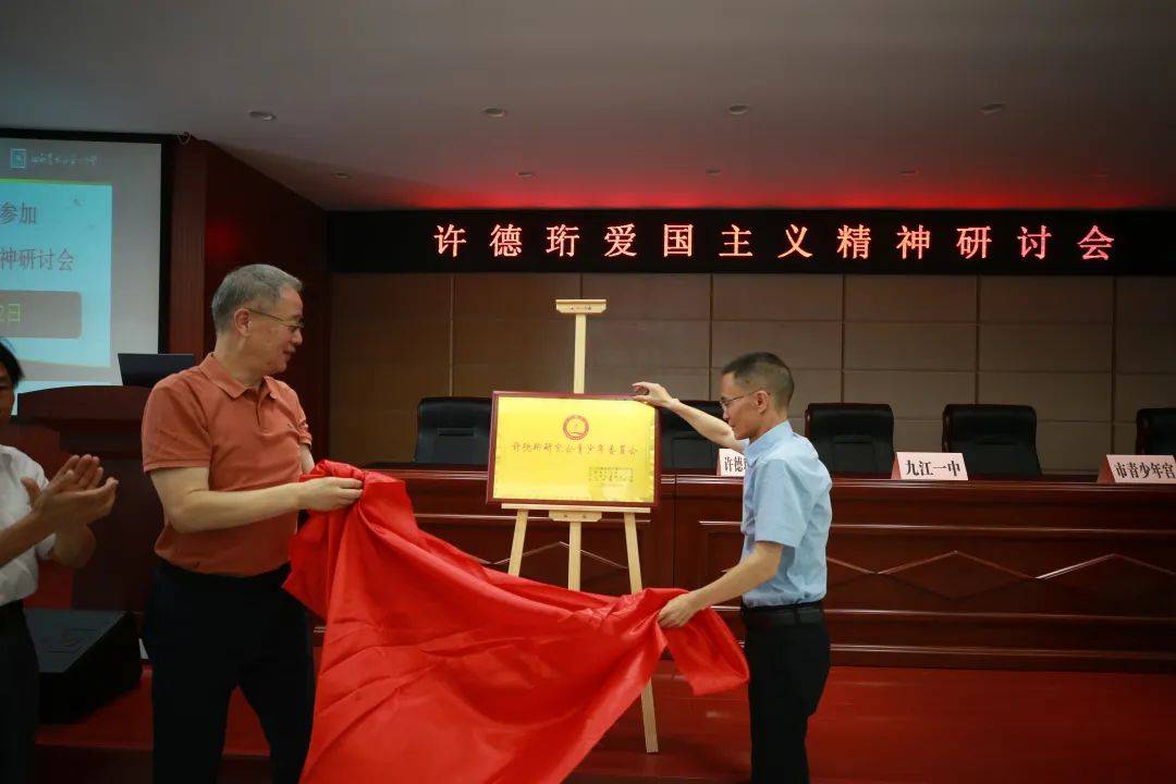 应邀专程从北京前来参加活动和会议的许德珩之孙、全国政协委员、九江市濂溪区许德珩研究会名誉会长许进和濂溪区委常委、宣传部长陈典勤共同为“许德珩研究会青少年委员会”揭牌、授牌并分别在研讨会上讲话。
