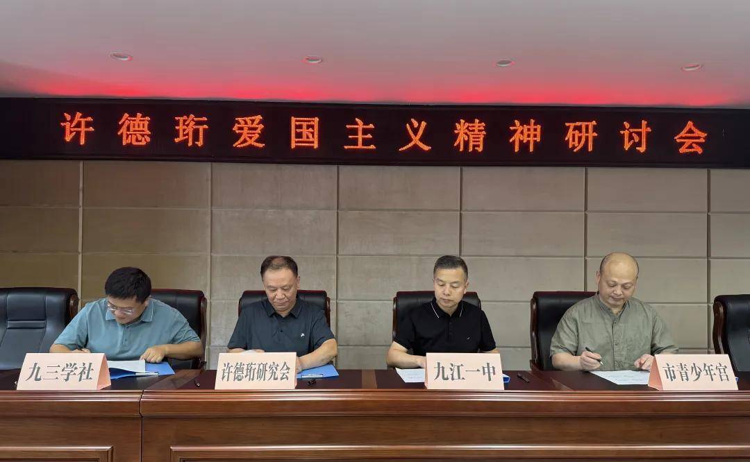 正是江南好风景,群贤毕至襄盛举。6月2日上午,在清澈的南门湖畔美丽的九江一中校园,由九江市濂溪区许德珩研究会和九三学社濂溪区支社共同举办的许德珩爱国主义精神研讨会暨许德珩研究会青少年委员会共建签约、揭牌仪式在这里隆重举行。