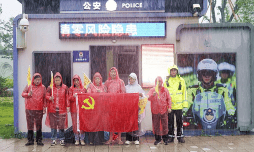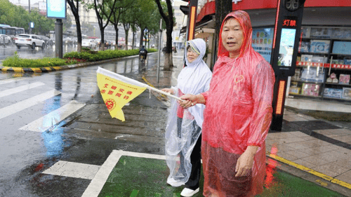 过程中,志愿者们的行动显示出三大亮点:一是党员率先垂范,带动入党积极分子和优秀志愿者,以"学雷锋.迎七一"为旗号,展示了新时代党员志愿者们"不忘初心,牢记使命"的精神风貌和模范带头作用。二是明知天气预报连续三天有强降雨和雷电过程,但大家亳不畏惧,都觉得天气越恶劣,交通运行越更需要一份安全和责任。老天一直大雨不停,志愿者们穿戴的雨衣不管用,雨水把他们淋得浑身湿透,但在这困难面前大家无怨言,不退缩,因为这种精神已成为颐和公益志愿者们的光荣传承。三是参加这次志愿者活动的16人中,其中最大年龄72岁,还有50年党龄的老同志,尤其是好几位50岁以上的"奶奶"们,也不甘示弱,入党积极分子和优秀志愿者更是首当其冲。