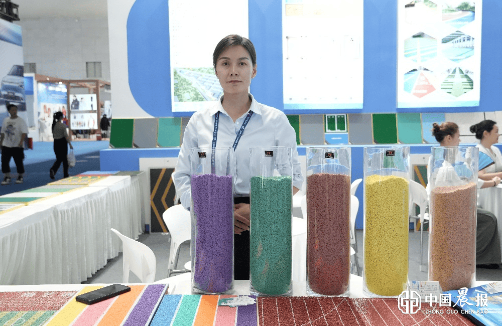 在博览会现场,路艺通达环保科技有限公司为我们带来了100多种产品,其生产的地坪漆材料、市政彩色路面材料、体育场地材料广泛应用于市政、园林、体育、运动场等领域,吸引了来自多个国家和地区的客商前来咨询、洽谈合作。
