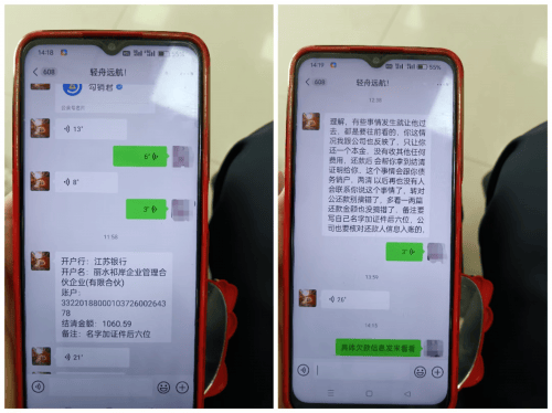 8月8日下午,一位客户神色慌张地来到邮储银行瑞安市支行咨询对公转账相关事宜,客户表示是有人联系她说手机担保欠了钱,现在需要还1060.59元,客户眉宇间较犹豫。