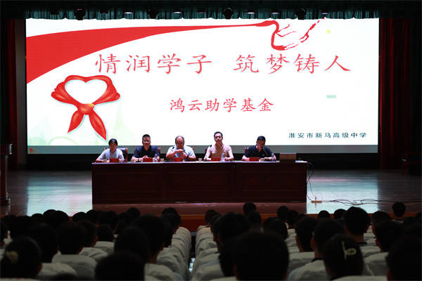 “鸿云助学基金”由江苏鸿云精密工业有限公司爱心人士许伟先生捐资100万元在新马高中设立,旨在帮助优秀的贫困家庭的学生能顺利地完成学业,在社会大家庭中愉快地学习,幸福地成长,实现人生梦想。