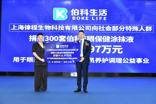 当天,上海律程生物科技有限公司向新疆当地部分亚健康群众,捐赠了包括护眼产品,并且对于伯科生活优秀运营中心、伯科生活优秀门店、伯科生活优秀个人进行表彰。