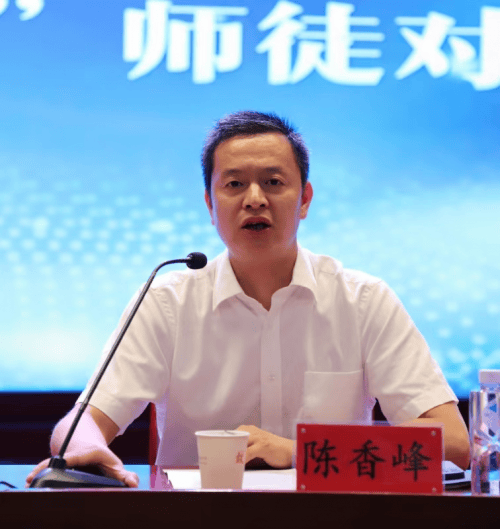 陈香峰校长说青蓝工程是精神的传承、责任的担当和对未来的期许,对师徒们提出四点建议。