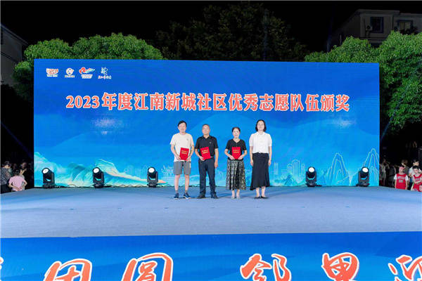 晚会中,江南新城社区特别设置了“2023年度最美志愿者颁奖”环节,对在社区服务中做出杰出贡献的志愿者们进行了表彰,弘扬了无私奉献、乐于助人的社会正能量。此外,江南新城小学的学生们带来了时装秀《霓光·幻梦》,他们身着精心设计的服装,自信地走在T台上,展现了新时代青少年的风采与创意。