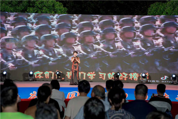 本次晚会以江南新城社区阳光明媚舞蹈队的开场舞《五星红旗》拉开帷幕,队员们身着鲜艳的红装裙,以矫健的舞姿展现了新时代新老年人的活力与爱国情怀。随后,谭家岭村戏曲队献上越剧《歌唱人民解放军》,深情的演唱和精湛的表演让现场观众仿佛穿越回到那个英雄辈出的年代,感受历史的厚重与辉煌。