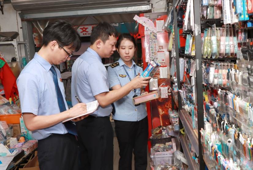 办案检察官与区市场监管局工作人员,检查校园周边小卖铺,是否违规销售烟卡