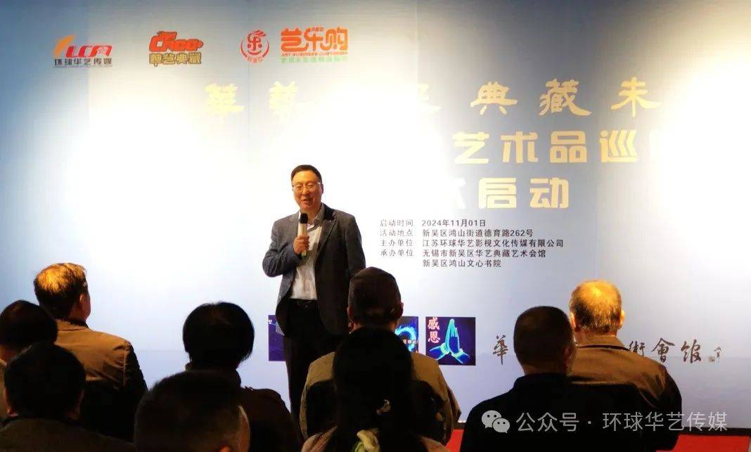 2024 年 11 月 1 日下午14:28分,无锡市新吴区华艺典藏艺术会馆热闹非凡,“ 华艺风采,典藏未来 ” 当代艺术品巡展启动仪式在这里隆重举行。众多嘉宾、艺术家以及艺术品藏家、企业家们、艺术爱好者齐聚一堂,共同见证这一艺术盛事的开启。