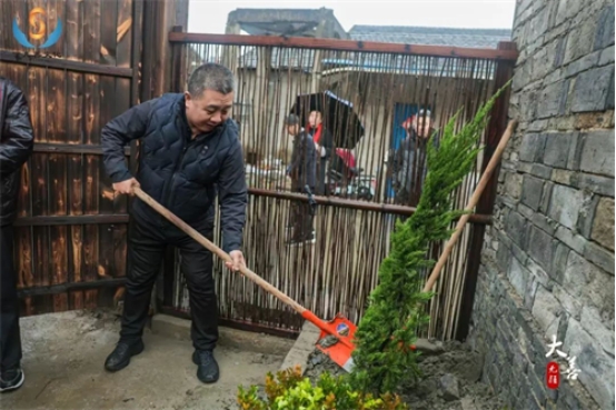 在园内,袁世后裔和各位来宾共同植种松柏,松柏象征四季常青,袁氏精神永驻。与此同时,众人满怀深情齐声诵读《袁了凡宗亲馆祝词》,祝愿袁氏后裔继承祖德,百世昌盛,了凡文化,发扬光大。